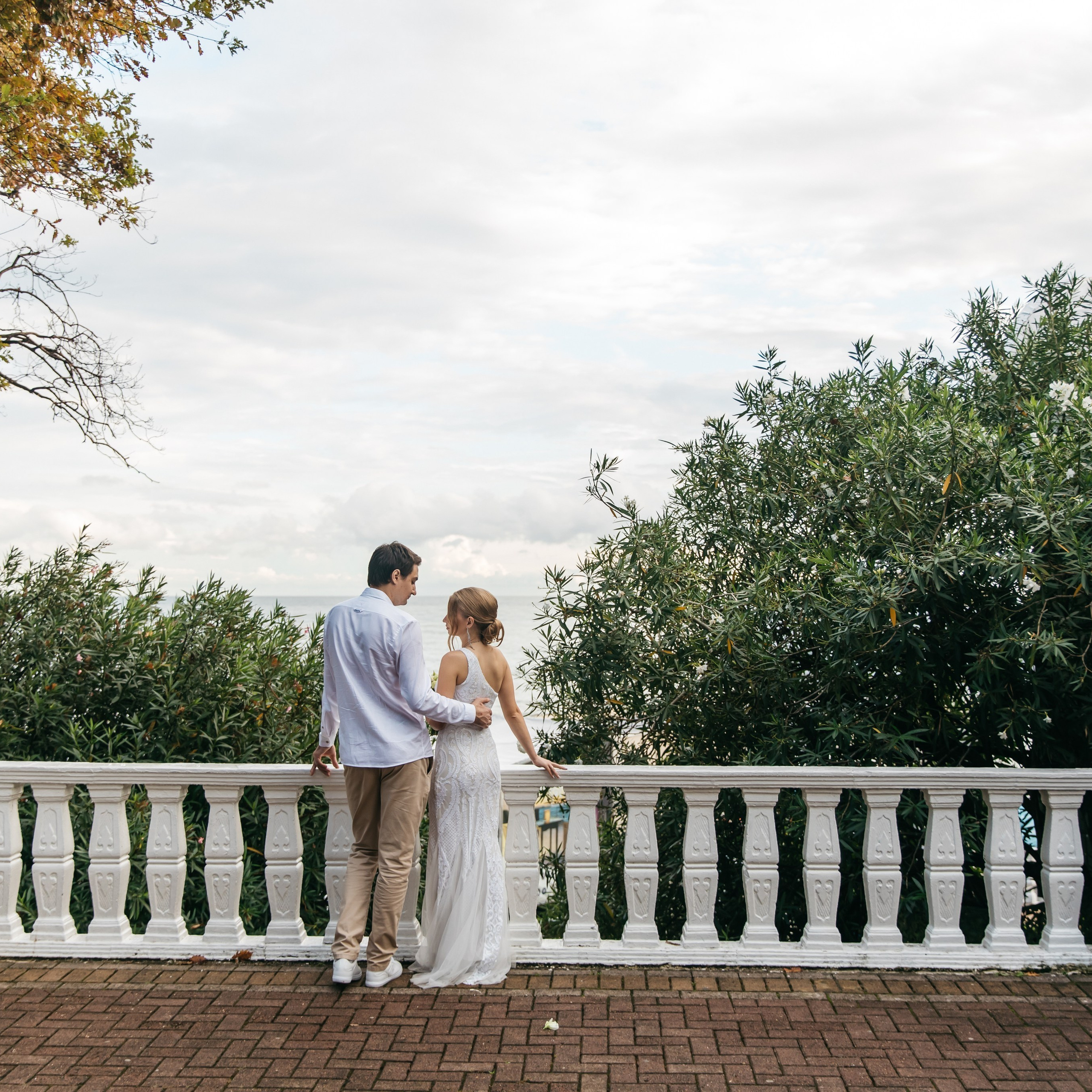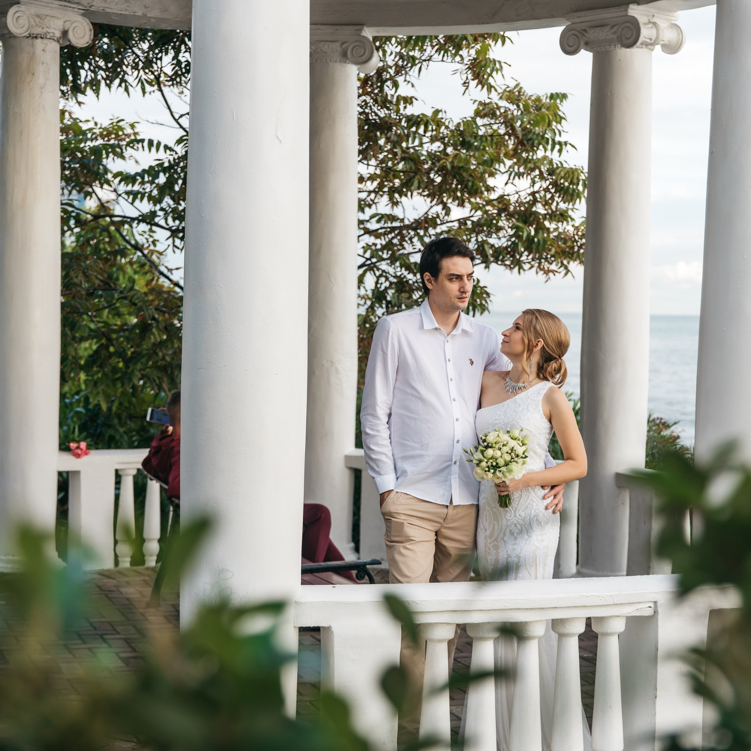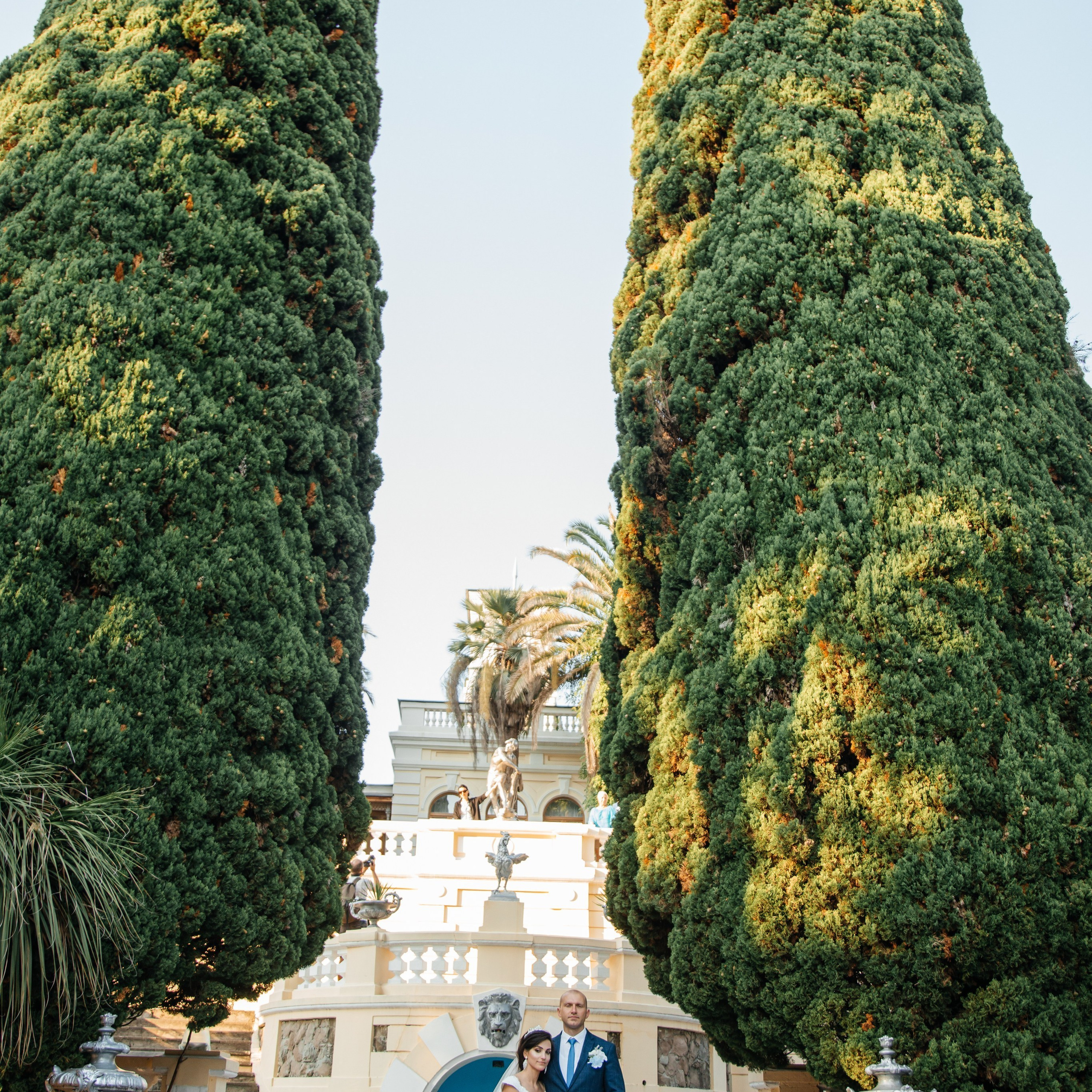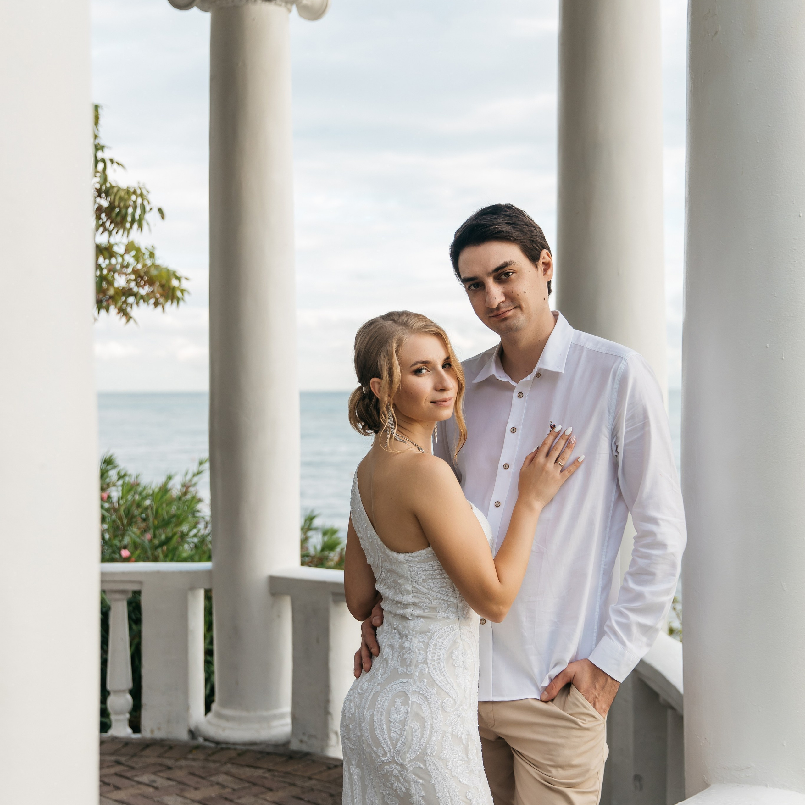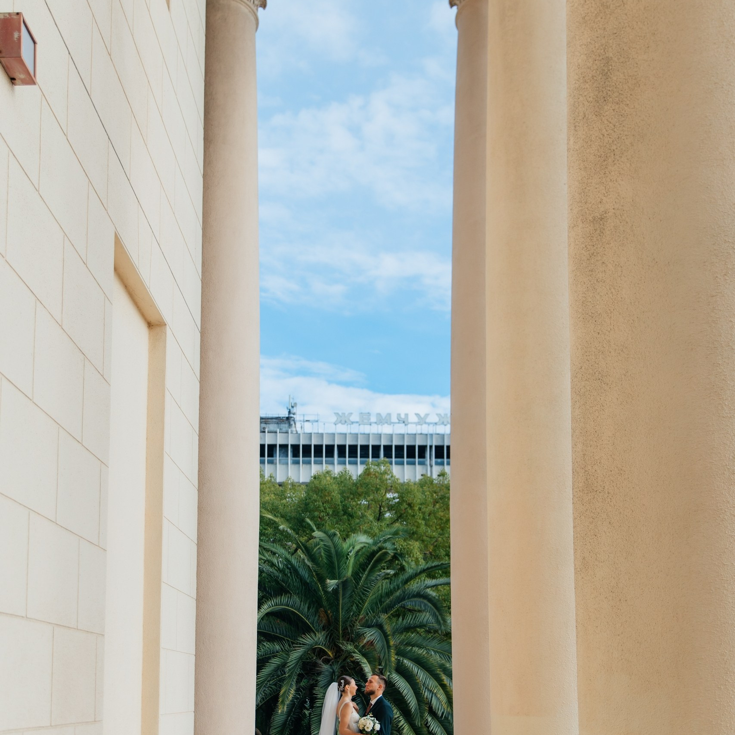 Шикарная локация для свадебной съемки. Само здание театра с колоннами, можно сделать стильные кадры. Также рядом с театром есть маленький симпатичный парк с прудиком и пальмами. И при желании можно спуститься к морю.
