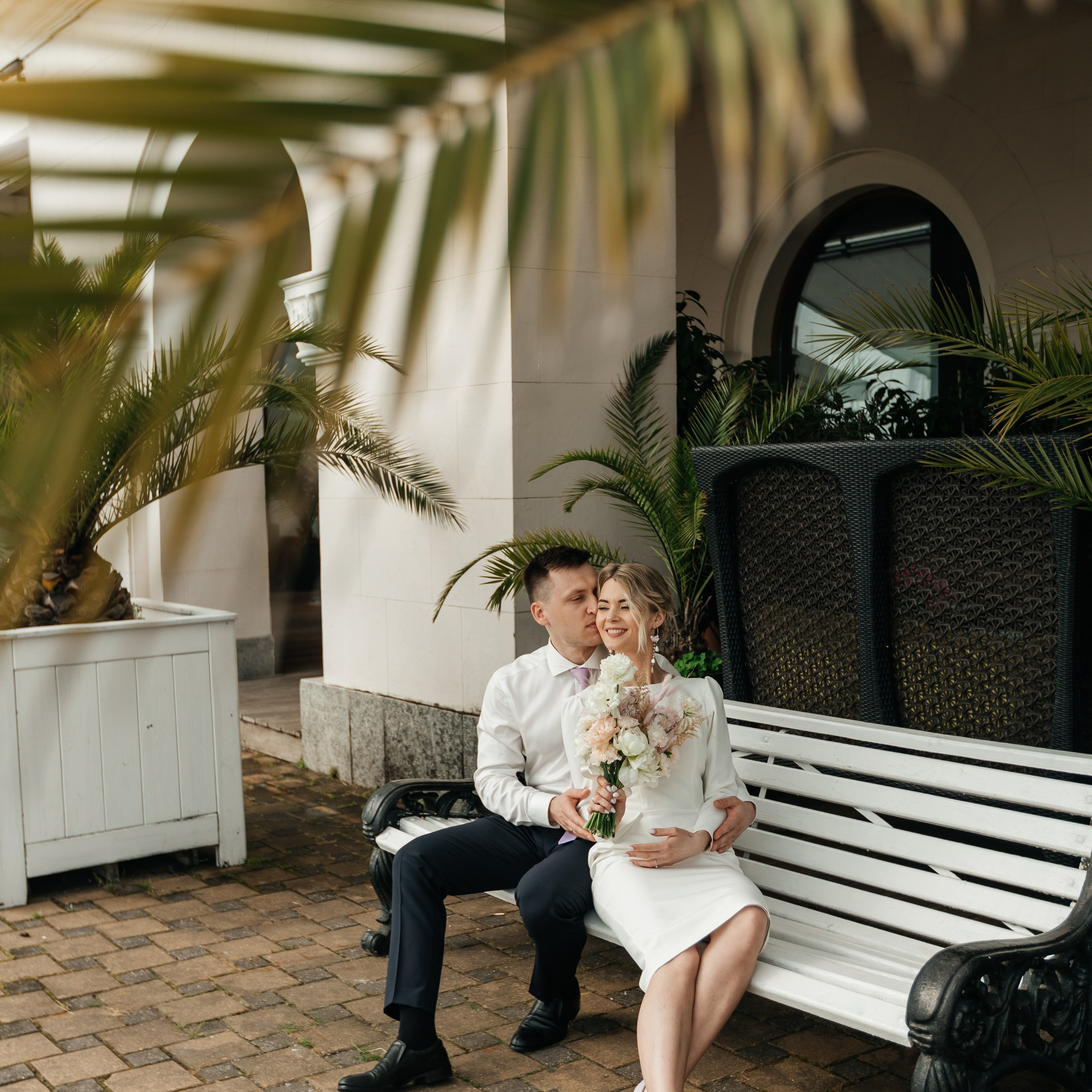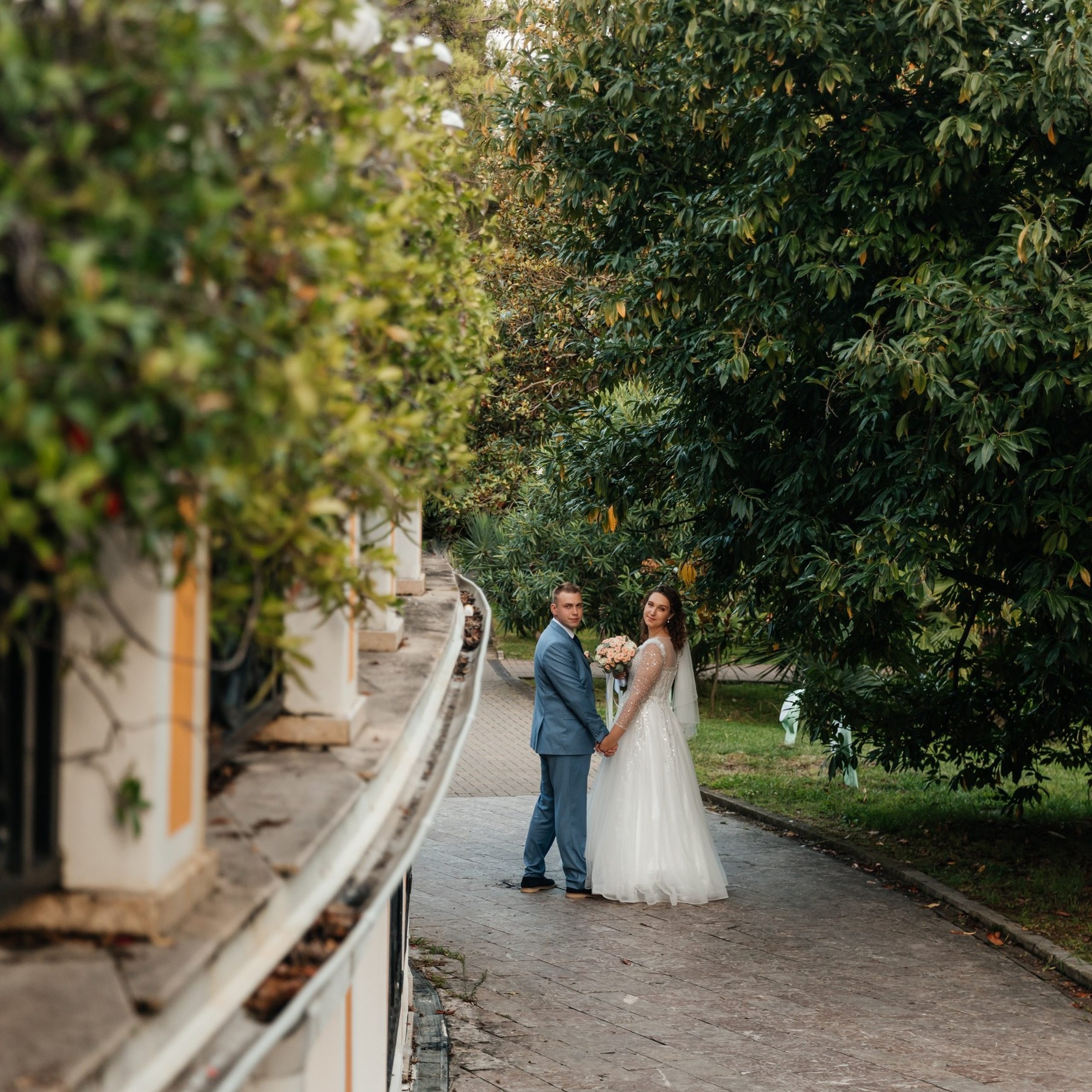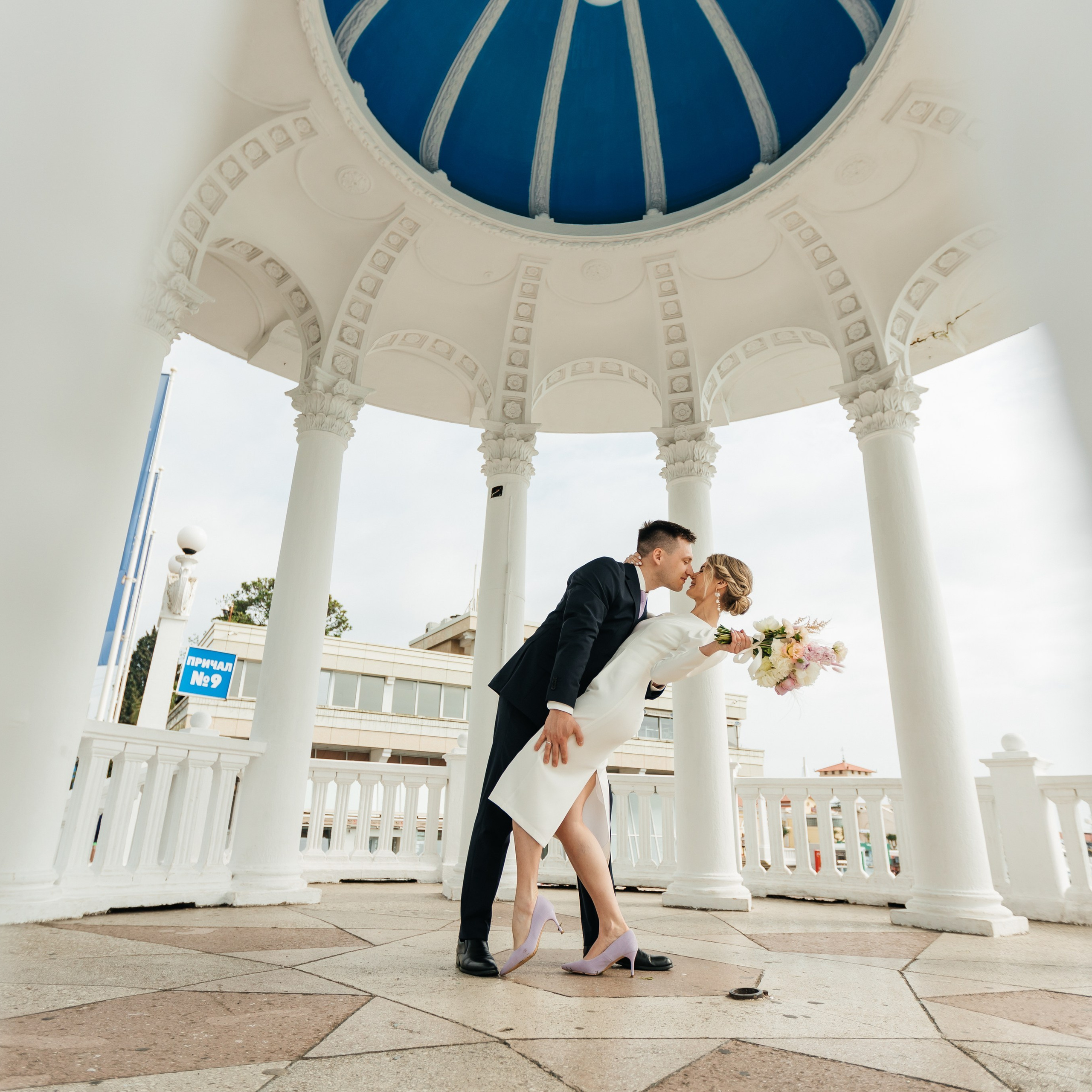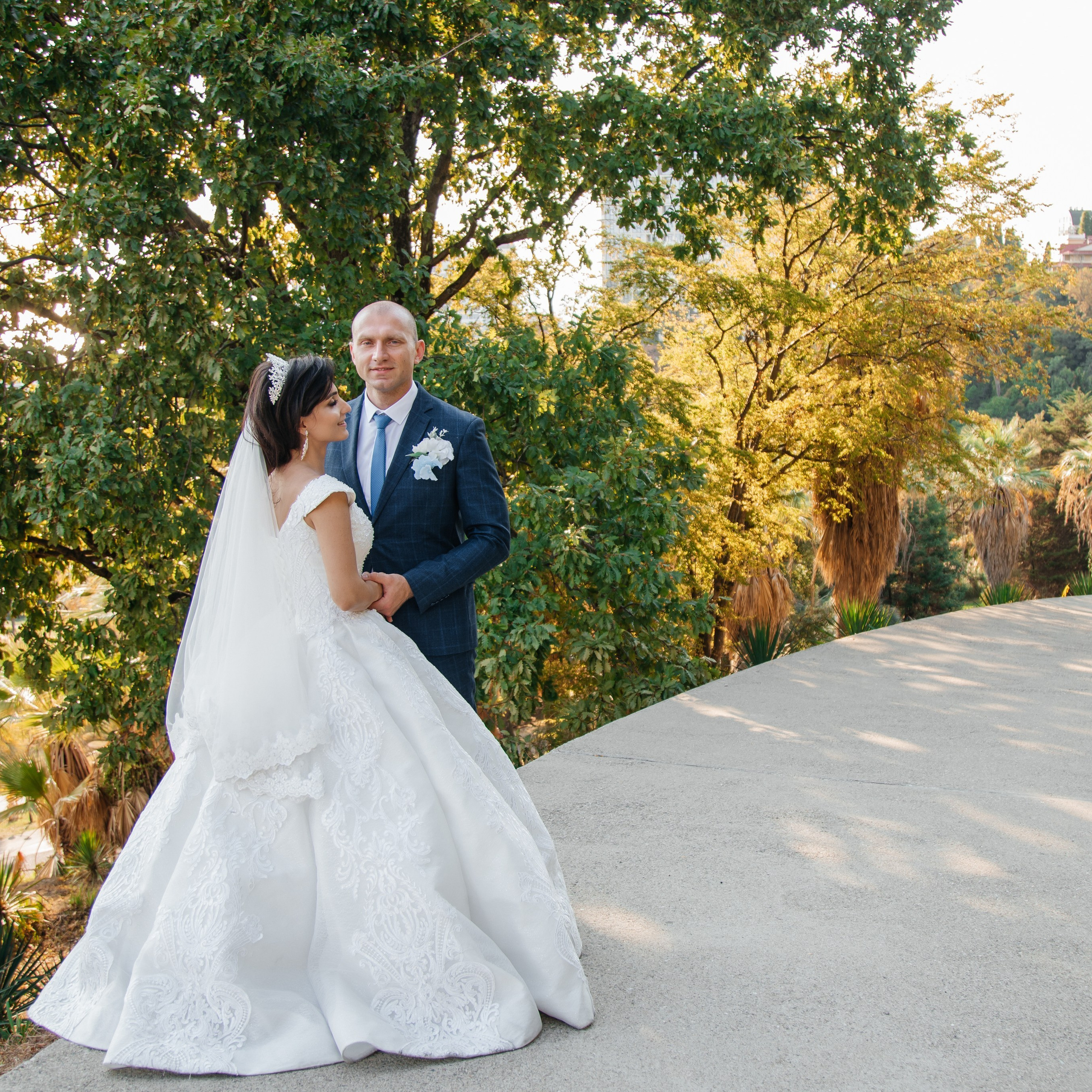 Шикарная локация для свадебной съемки. Само здание театра с колоннами, можно сделать стильные кадры. Также рядом с театром есть маленький симпатичный парк с прудиком и пальмами. И при желании можно спуститься к морю.