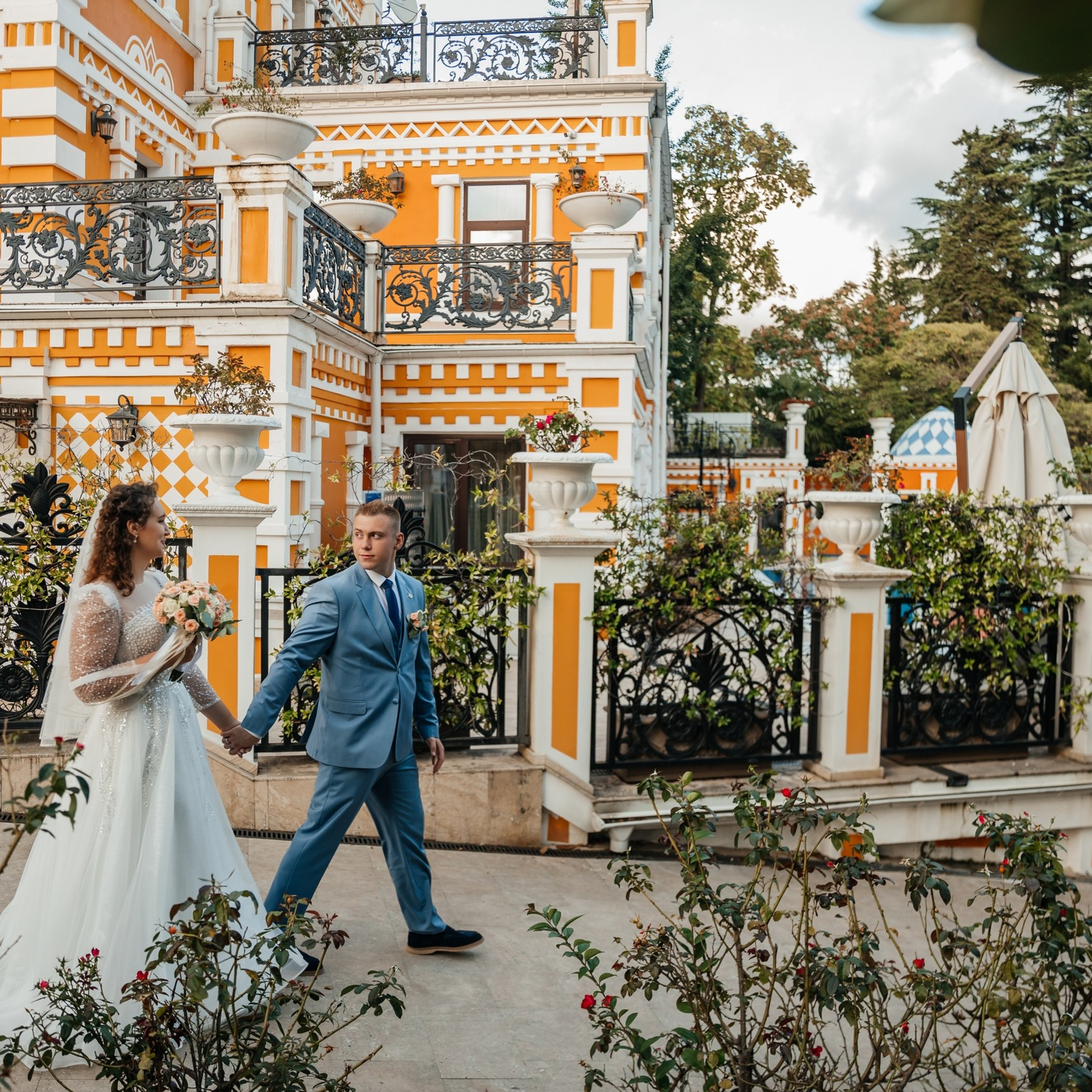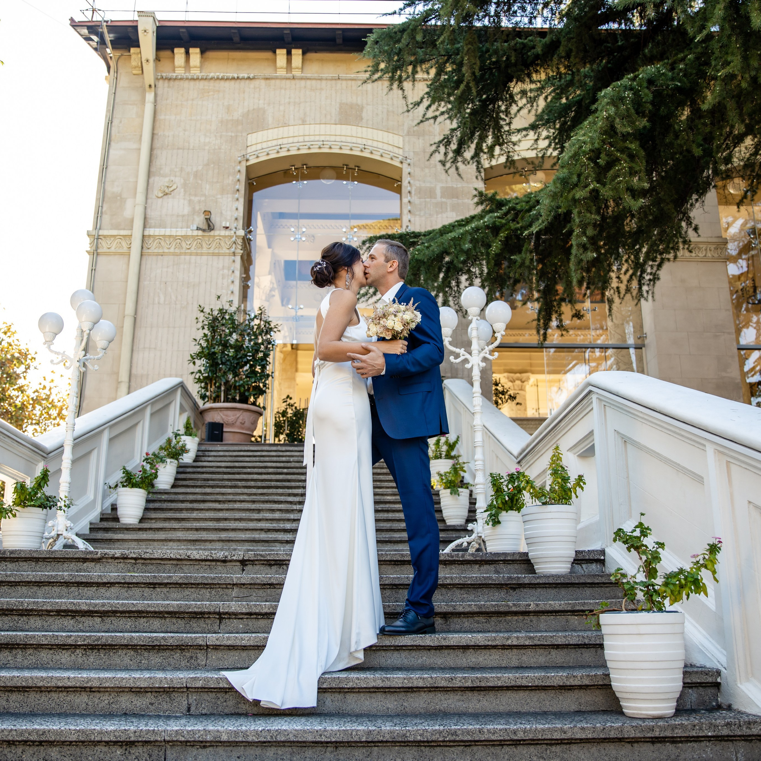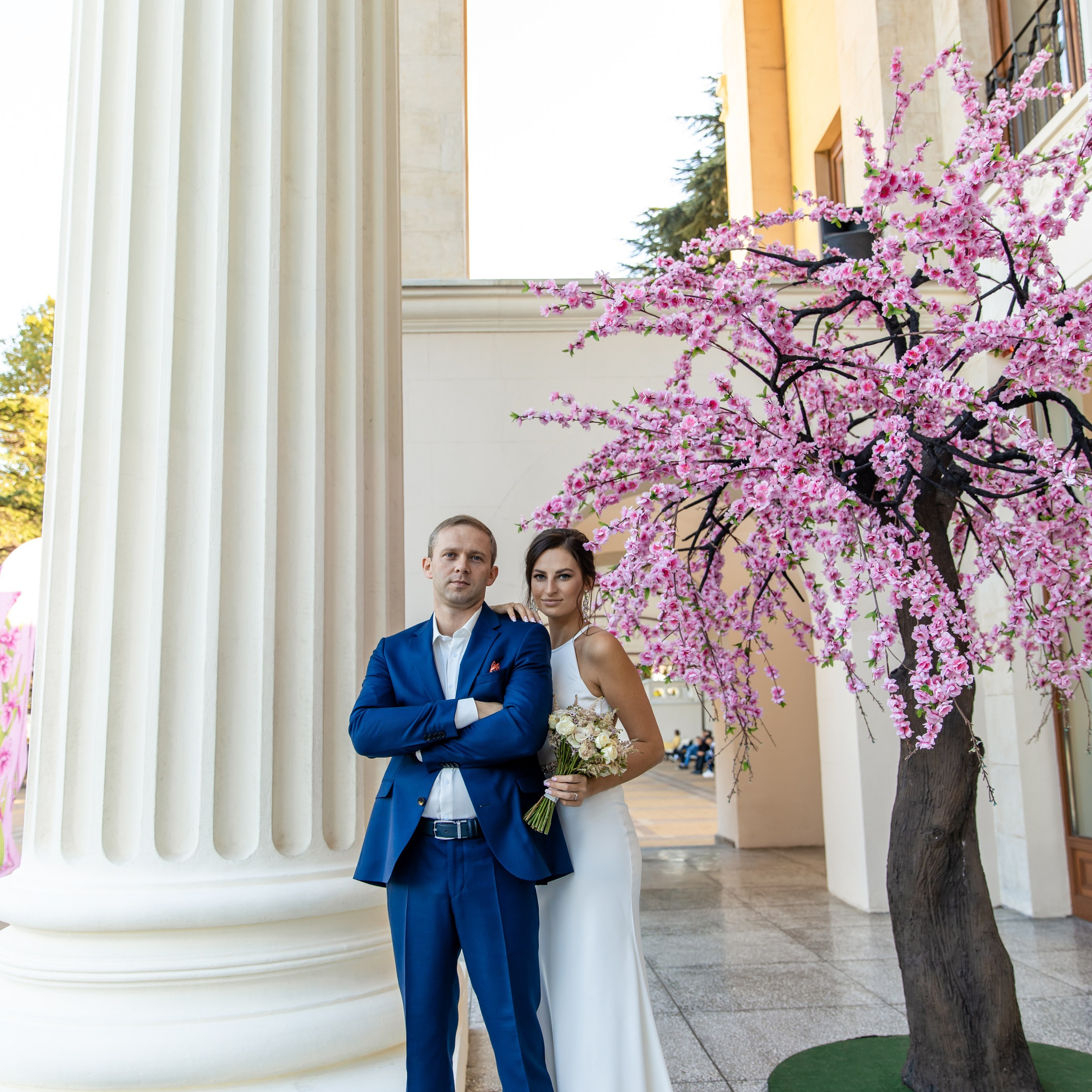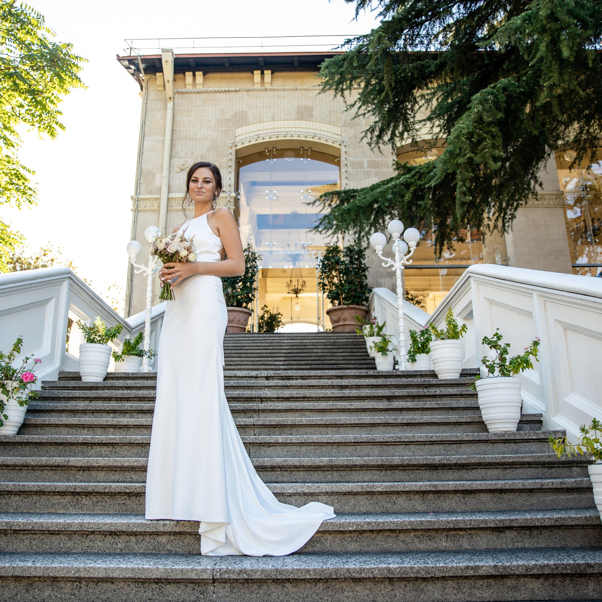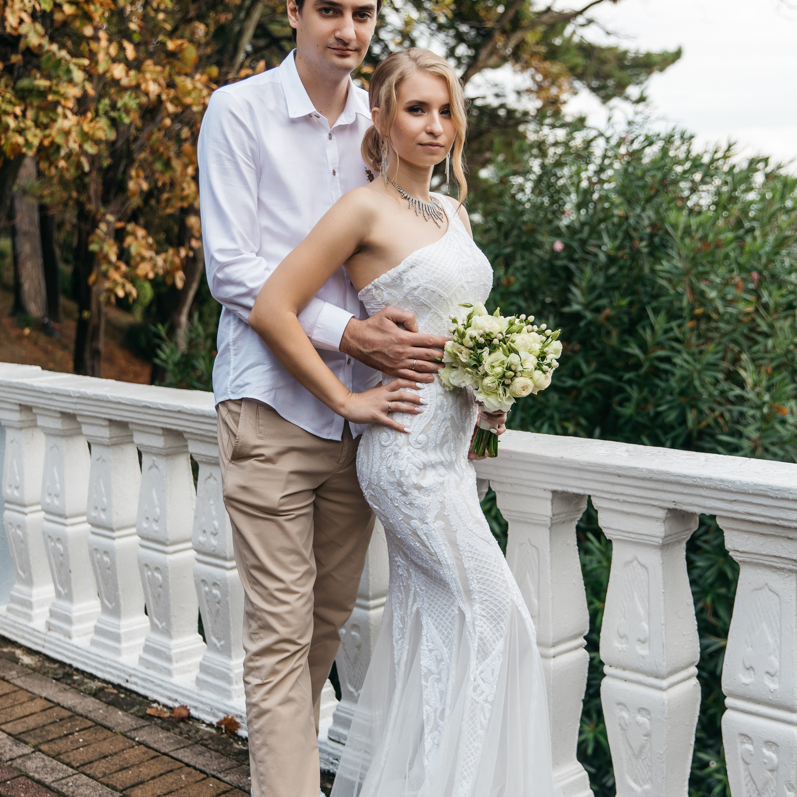 Шикарная локация для свадебной съемки. Само здание театра с колоннами, можно сделать стильные кадры. Также рядом с театром есть маленький симпатичный парк с прудиком и пальмами. И при желании можно спуститься к морю.