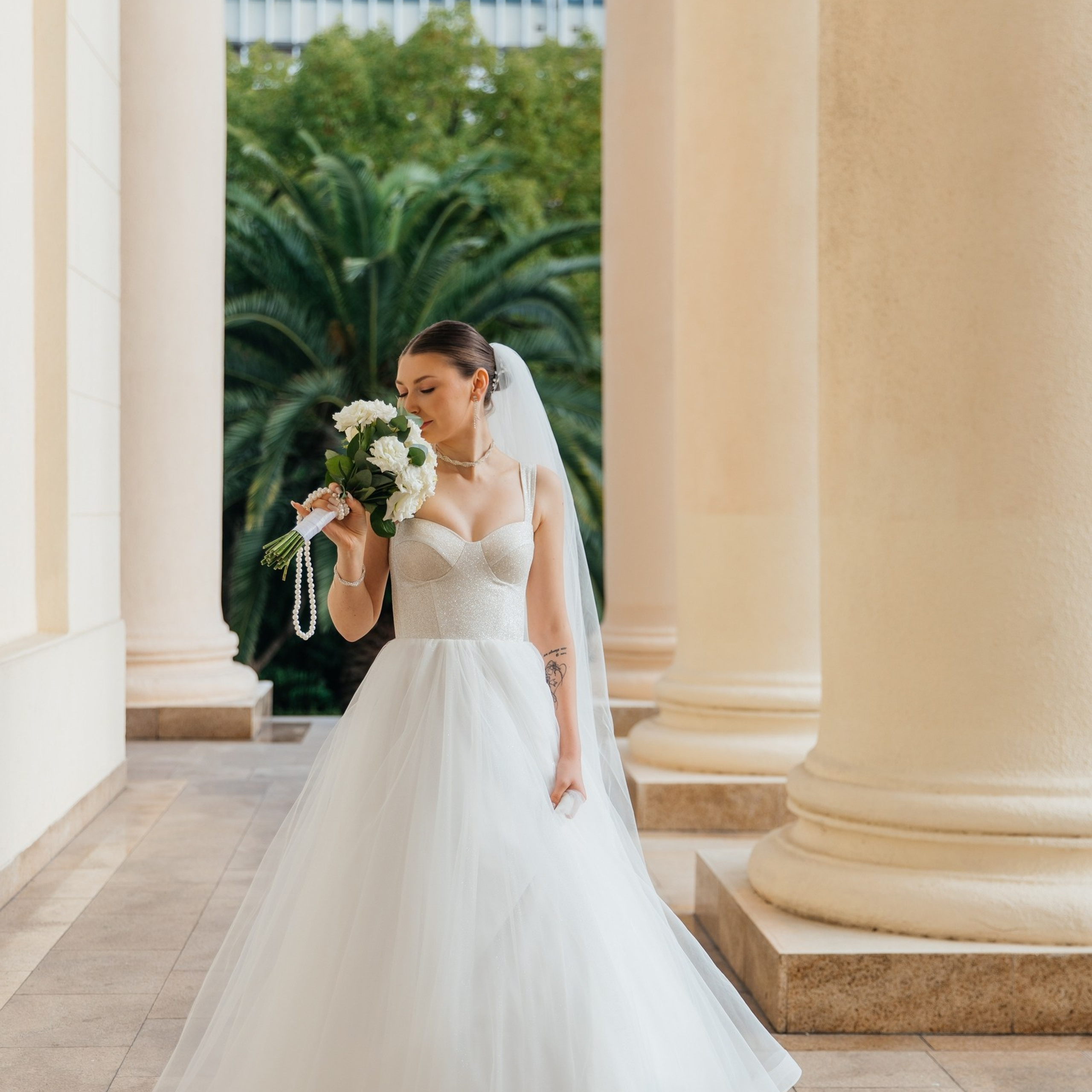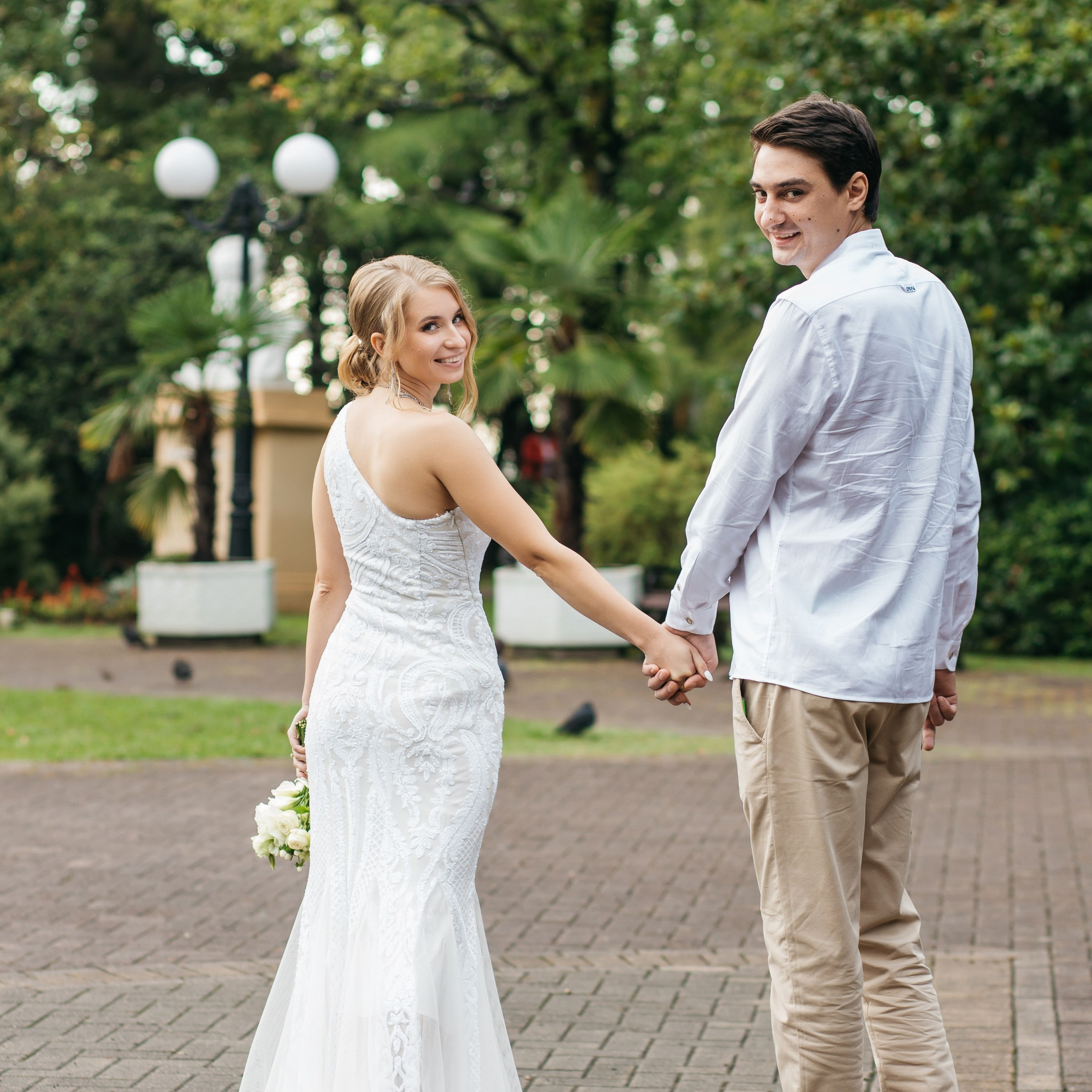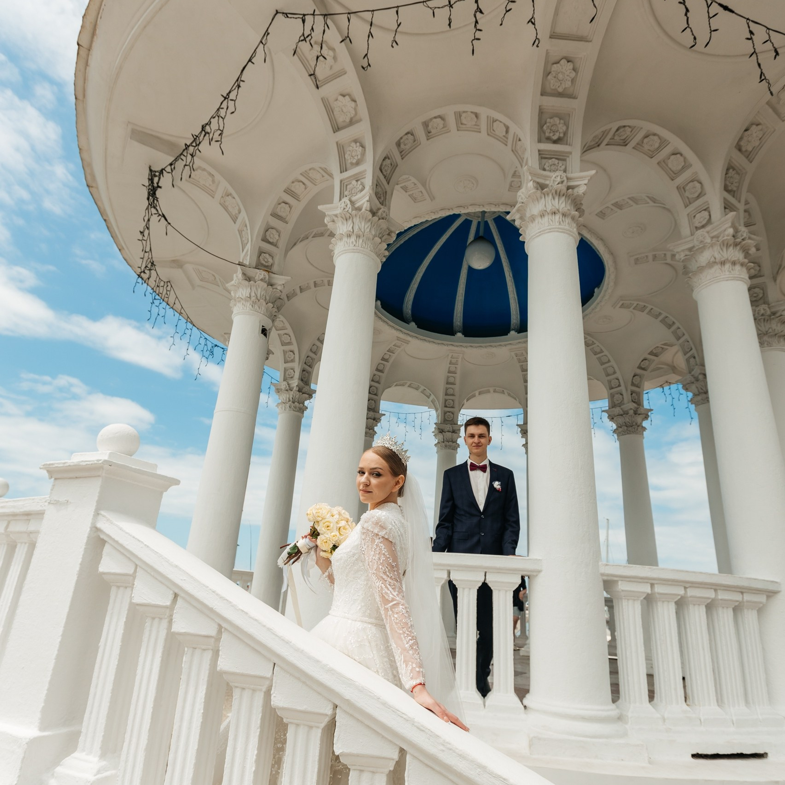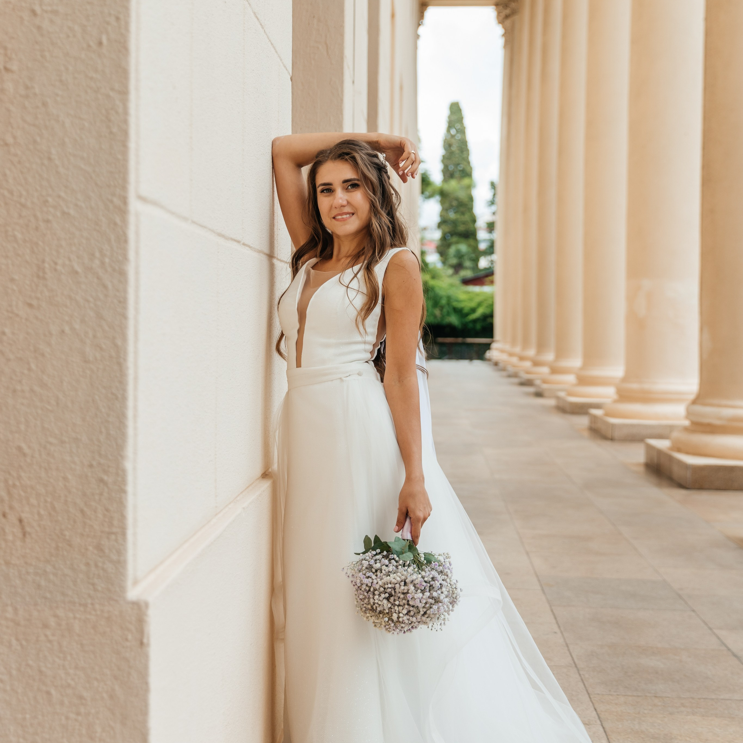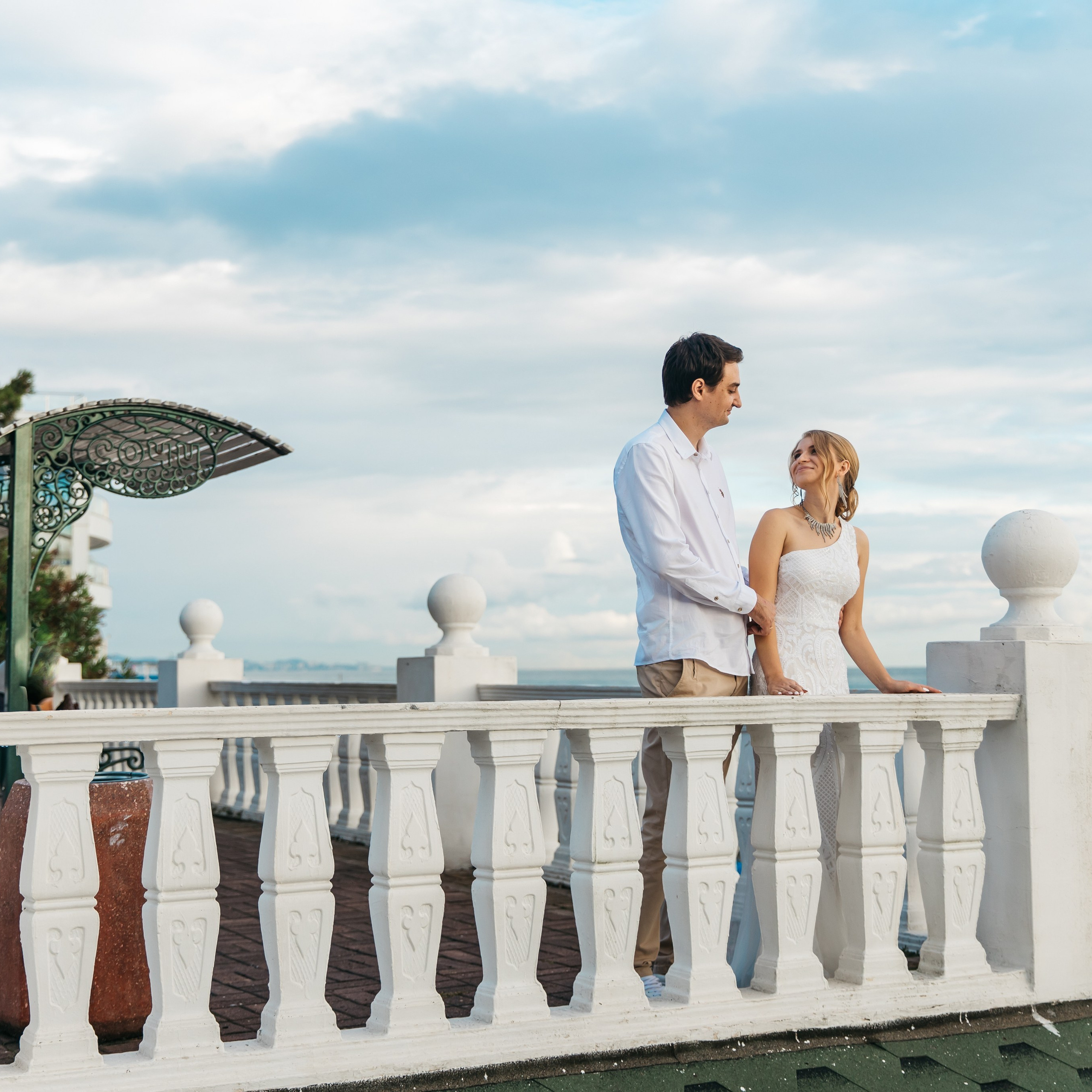Шикарная локация для свадебной съемки. Само здание театра с колоннами, можно сделать стильные кадры. Также рядом с театром есть маленький симпатичный парк с прудиком и пальмами. И при желании можно спуститься к морю.