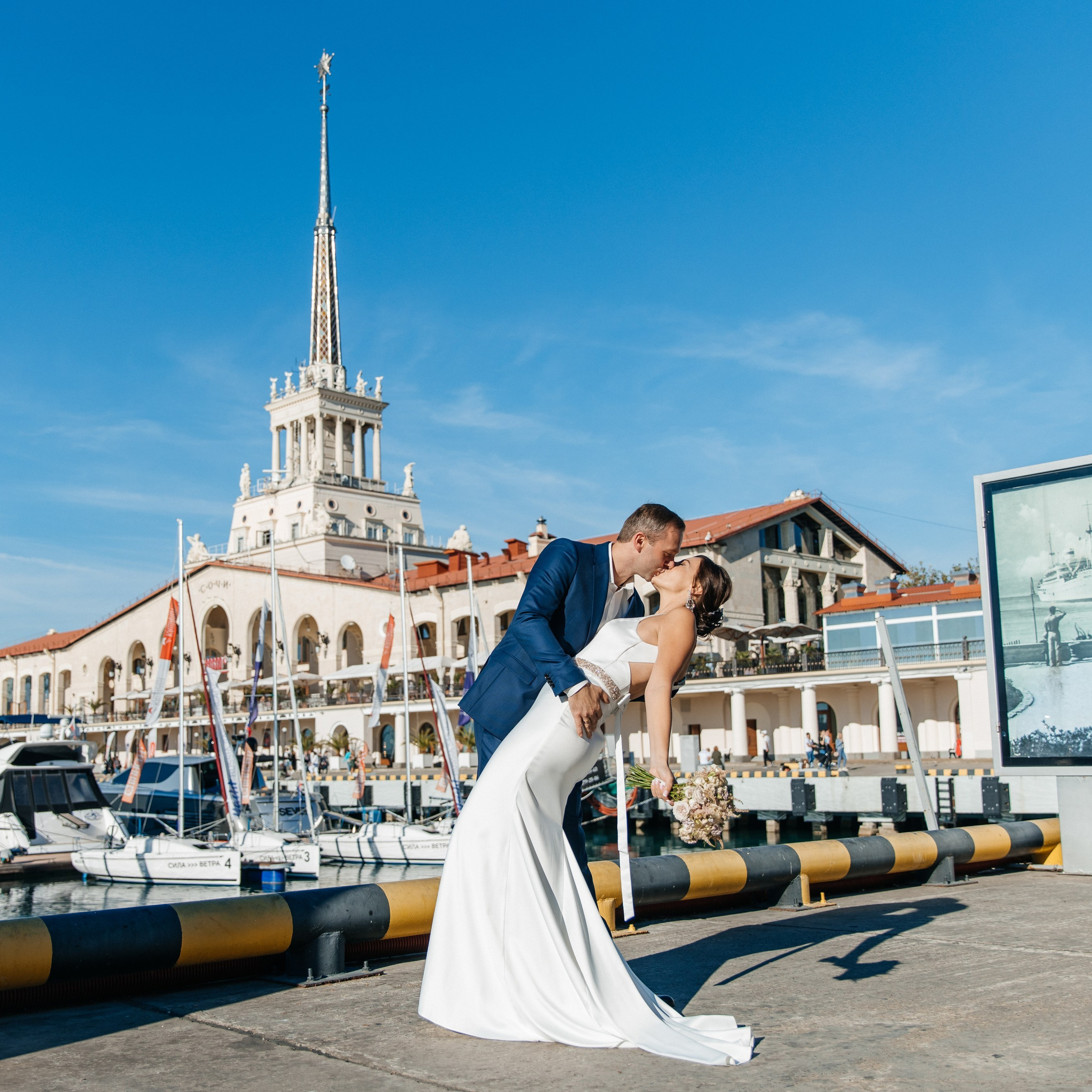 Если вы первый раз в Сочи, то просто обязаны сделать здесь съемку. Тут есть все для инстаграммных кадров: парк с пальмами и цветами, красивая архитектура, стильные бутики, шикарные яхты и вид на море.